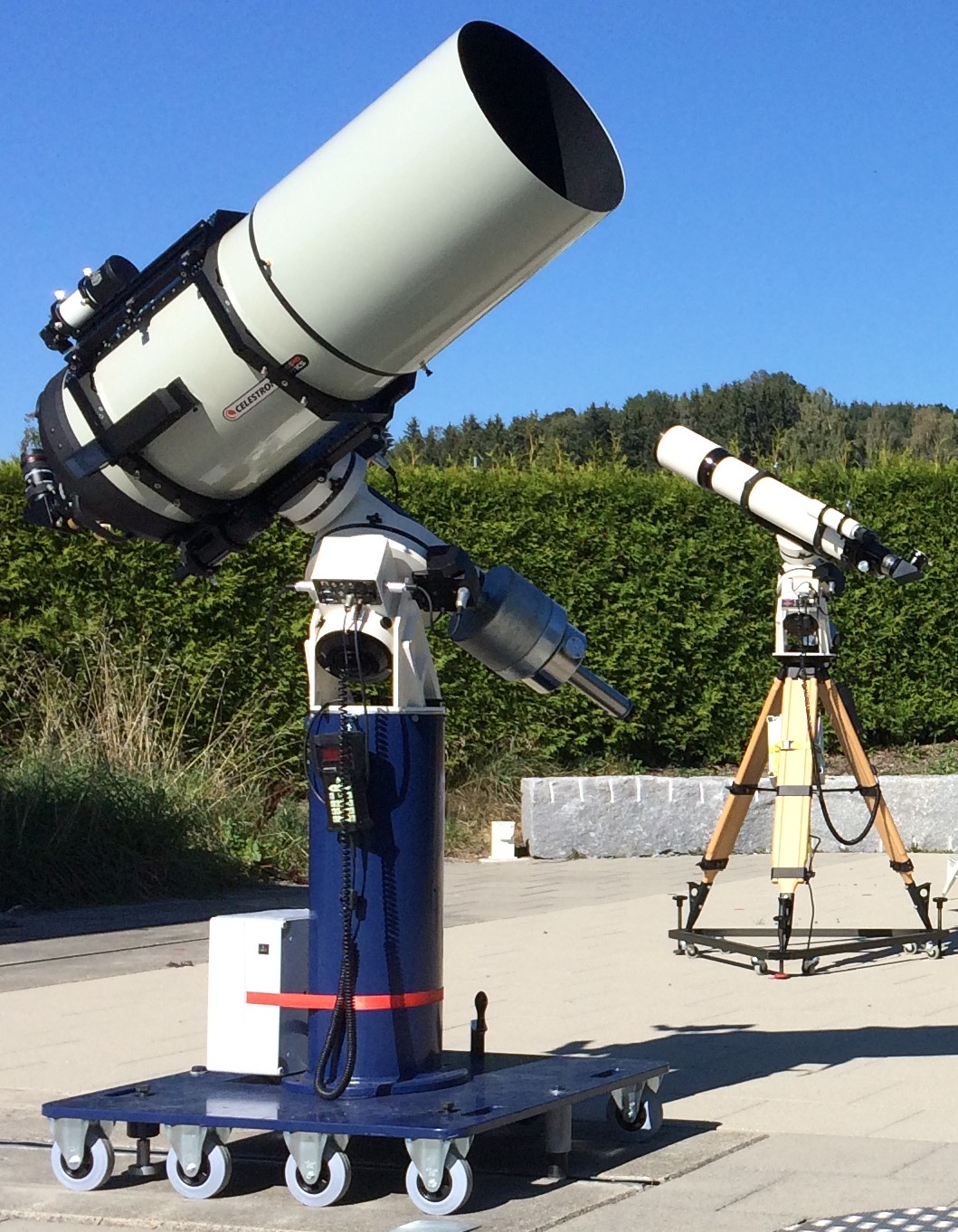 Celestron 14'' EdgeHD Schmidt-Cassegrain-Teleskop, 355.6mm Öffnung, 3910mm Brennweite, auf einer rollbaren Stahlsäule mit AstroPhysics 1200 GTO Montierung mit Computersteuerung;